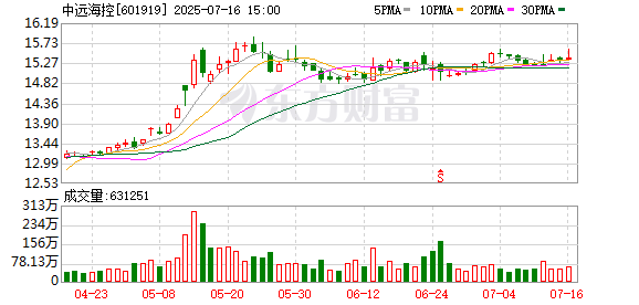 证券时报·数据宝统计显示,中远海控今日收盘价为15.39元,上涨0.26%,日换手率为0.50%,成交额为9.74亿元,全天主力资金净流入6386.62万元,近5日该股累计上涨1.05%,近5日资金合计净流入1.77亿元。